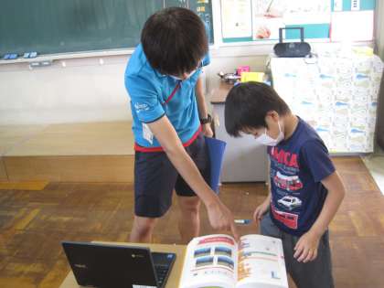 7月14日(水) 1年生 プログラミングにチャレンジ! 公開日 2021/07/14 更新日 2021/07/14 1年生 1年生は、プログラミングに興味関心を持ち始め、分厚い説明書を片手に、魚が出てくるゲームを作成中です。 もうプログラミングもできるようになった!? 興味関心は、子供の学びをどんどん高めていきます。