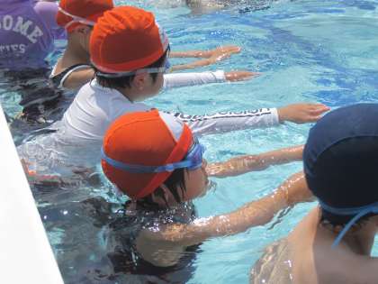 7月14日(水) 体育教室 水泳教室 その5 公開日 2021/07/14 更新日 2021/07/14 朝日小学校NEWS 最初は、水に顔をつけるのも嫌がっていた子供も、最後には自分から顔をつけたり泳いだりしていました。 1時間たっぷりと指導していただきました。