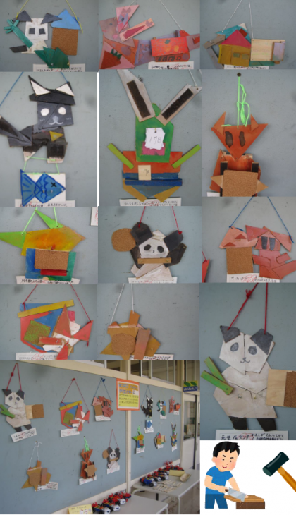 7月14日(水) 4年生 図画工作科 ギコギコトントンクリエーター 公開日 2021/07/14 更新日 2021/07/14 4年生 完成した作品が教室前の掲示版に登場!タイトルも個性的です。 個別懇談会にお越しの際には、ぜひご覧ください。