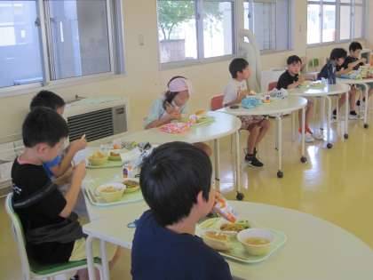 7月16日(金) 今日は大きな円になって食べました! 公開日 2021/07/16 更新日 2021/07/16 朝日小学校NEWS 今日のランチルームでの給食は、大きな大きな円になって食べました。 転校する友達との最後の給食は、みんなの顔が見ながら食べました。 黙食ですが、みんなの顔を見ながら食べるとより一層美味しく感じますね。