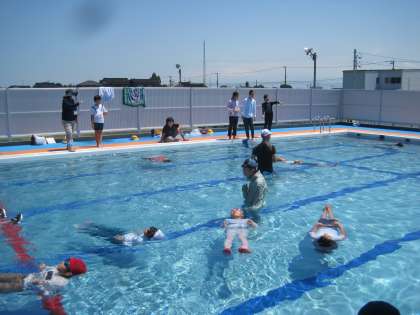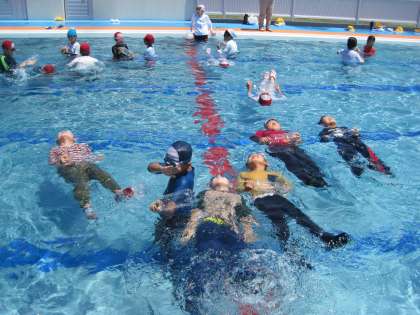 最初は、なかなか浮くことが出来なかった子供も、最後には半数以上の子供が浮いて助けを待つことができました。