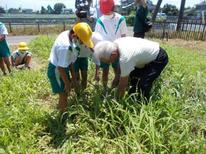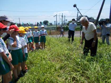 地域のスイカ名人さんに来ていただき、子供たちが収穫用に選んだスイカが、食べ頃かどうかを見ていただきました。
