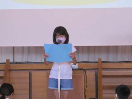 3年生、5・6年生代表の2名が、1学期頑張ったことについて発表しました。