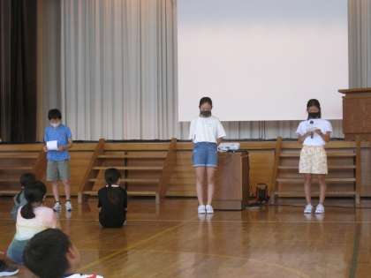 小学校生活の素晴らしい思い出をつくりたい、立山の素晴らしい自然を見るのが楽しみだ、立山登山にチャレンジして、達成感を味わいたい、、、という思いを述べました。