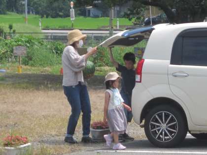 3年生は、大切に育てた甘いスイカを家の人と一緒に持ち帰りました。どうぞご家庭でご賞味ください。