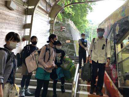 ケ−ブルカ−に乗り、一気に500mを登って、美女平まで行きます。