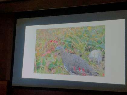 7月26日(月) 6年生 立山登山 ナチュラリストさんのお話 公開日 2021/07/26 更新日 2021/07/26 学校行事 夕食後は、ナチュラリストさんから、雷鳥のメスとオスの見分け方やヒナの様子、弥陀ヶ原の植生についてお話をしていただきました。