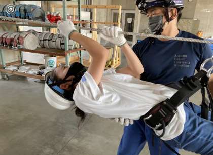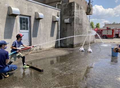腕の力だけでロープを渡ったり、的をめがけて放水したり、消防士の仕事の大変さを実感しました。