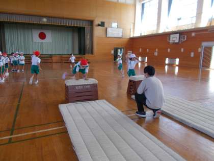 9月9日(木) 1・2年生 体育科 跳び箱を使った運動遊び 公開日 2021/09/09 更新日 2021/09/09 2年生 跳び箱を使った運動にチャレンジしています。 踏み切り板をうまく使って跳んでいる子供がたくさんいました。