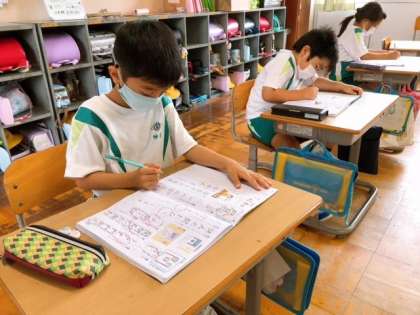 落ち着いた雰囲気で、静かに課題に取り組んでいます。正しい姿勢であると、きれいな文字を書くことができますね。背筋がピン!と伸びていて素敵です。
