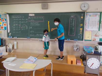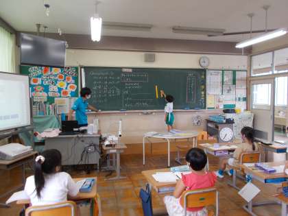 自分の考えを黒板で説明しています。友達の説明に対して、「うん」「そうだね」と相槌をうちながら聞くことができる姿も素敵ですね。