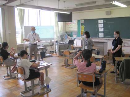 9月14日(火) 6年生 外国語科 夏休みの思い出 公開日 2021/09/14 更新日 2021/09/14 6年生 夏休みの思い出についてスピーチをします。その前に、今日は、表現になれるために一人1文ずつ、前の人の文に続けて言いながら、思い出作文づくりをしました。 久しぶりのエミリー先生との時間を楽しんでいます。