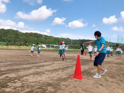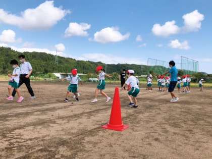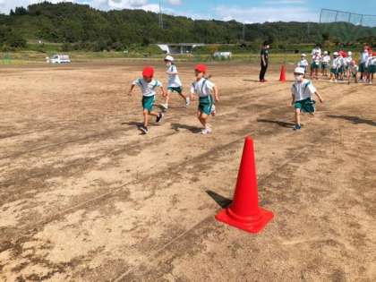9月15日(水) 1・2年生 体育タイム 公開日 2021/09/15 更新日 2021/09/15 1年生 今日はグラウンドで、走る練習をしました。大股で走るのと、小股で走るのとでは、どちらが早く走れるかな? 風も涼しく、よい天候で、運動するのが気持ちよさそうです。 みんな笑顔で楽しそうに活動していました。