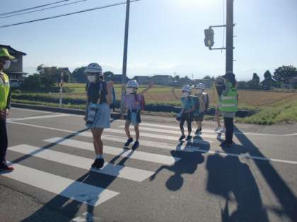 学校では登下校時は勿論、日頃の道路の歩き方や自転車の乗り方等、「自分の命は自分で守る」ことを合い言葉に、交通安全指導を継続しています。ご家庭でも、日々の交通安全と命の大切さについて、繰り返し声をかけていただきますようお願いします。