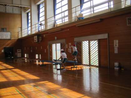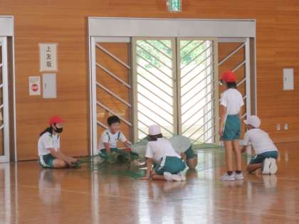 今日は来月にせまった運動会に向けて、高学年が自分たちで考えた加技走を実際にやってみました。