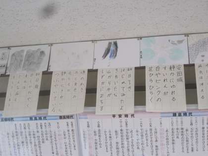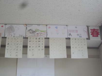 教室の壁面には、春、6月、夏のそれぞれでつくった俳句が絵と共に掲示してあります。