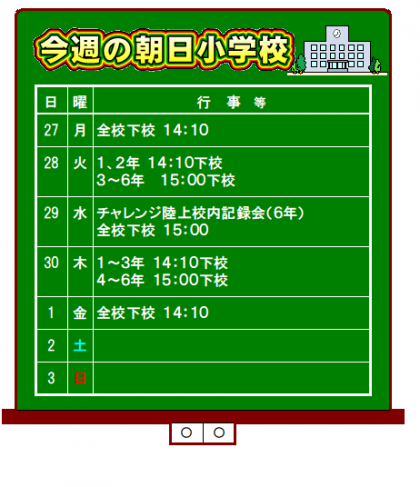 9月27日(月) 今週の朝日小学校
