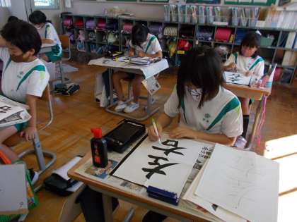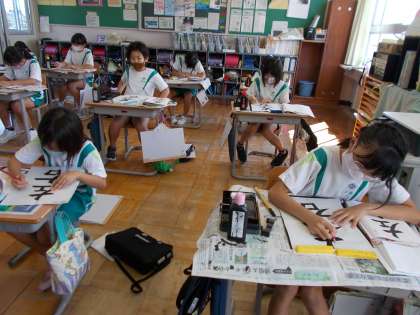 9月27日(月) 4年生 書写 筆順と字形に気を付けて書こう 公開日 2021/09/27 更新日 2021/09/27 4年生 「左右」という漢字を書いています。 形が似ていても筆順が違うところに気を付けて書きます。いきなり筆で書くのではなく、まずは、どの部分に気を付けて書くか、自分で気付いたことを手本に記入しています。 気を付けることを意識して書くことで、より整った文字が書けるようになりますね。