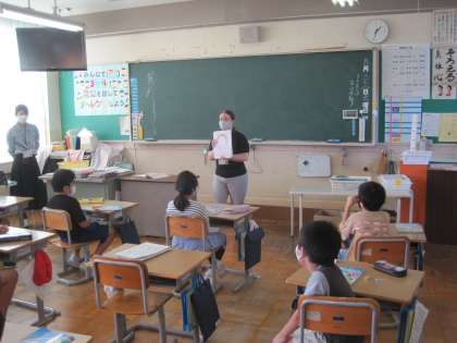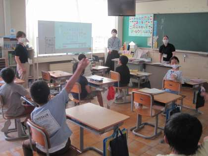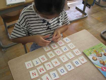 ALTの先生のあとに続いて発音練習をしたり、ABCソングを歌ったり、カードを使って楽しく学習したりしました。