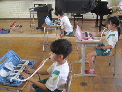 9月29日(水) 1年生 音楽科 きらきらぼし 公開日 2021/09/29 更新日 2021/09/29 1年生 鉄筋と鍵盤ハーモニカに分かれて、交代で演奏しています。 キラキラした星を思い浮かべながら演奏しています。