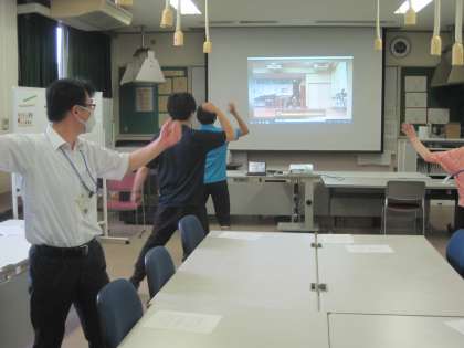 子供たちに指導する前にまず先生方が踊れるようにならねばと、本日放課後、動画を見ながら先生方がダンス練習をしました。