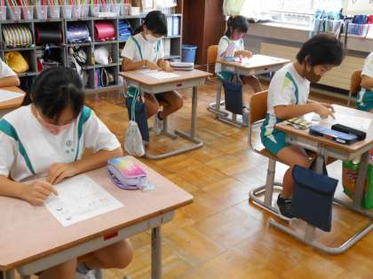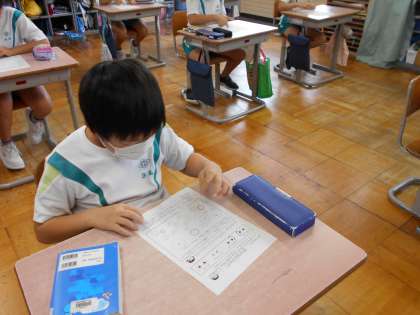 本日配付の「ほけん通信」にある、「ビジョントレーニング」にチャレンジしています。