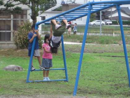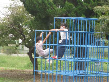 10月1日(金) 2年生 のびっこタイム 公開日 2021/10/01 更新日 2021/10/01 2年生 前庭は、2年生が使ってよい日です。 ジャングルジム、ブランコ、うんていと元気いっぱいに遊んでいます。