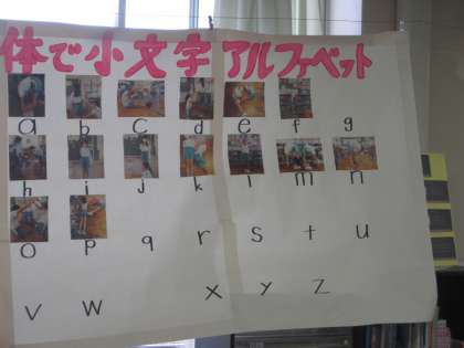 アルファベットの小文字に慣れるために、体で小文字を表して写真撮影しました。