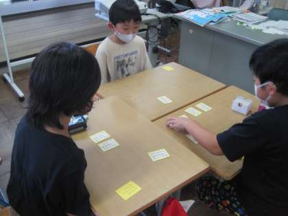 10月1日(金) 3年生 実戦!百人一首 公開日 2021/10/01 更新日 2021/10/01 3年生 百人一首を毎月全員合格している3年生は、1月の百人一首大会に向けて、時間があれば百人一首大会を行って腕を磨いています。 覚えた成果を確認するには、対戦が一番!
