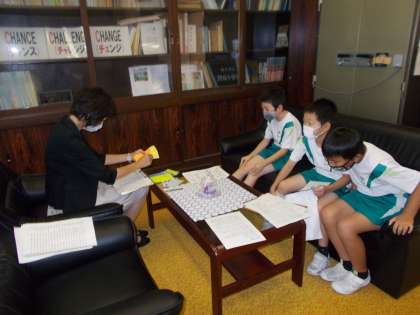 10月4日(月) 暗唱を続けています 公開日 2021/10/04 更新日 2021/10/04 朝日小学校NEWS 校長室に3年生が続々とやってきて、暗唱にチャレンジしています。 少し間違えたり、忘れたりしても、校長先生は、初めの文字をつぶやいたり、一緒に唱えたりしながらやさしく再チャレンジをさせてくださいます。 少し失敗しても、チャレンジし続ける姿勢を大切にしたいですね。