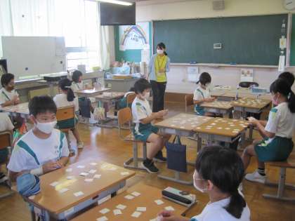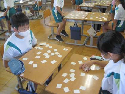 10月4日(月) 4年生 アルファベットカードで神経衰弱 公開日 2021/10/04 更新日 2021/10/04 4年生 サンシャインチャレンジタイムで、アルファベットカードを使ってペアで神経衰弱をしています。 楽しみながら大文字、小文字をマスターしています。