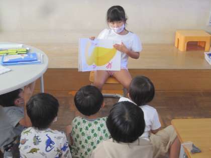 「読み聞かせ係」がさっそく読み聞かせをしています。 微笑ましい光景ですね。