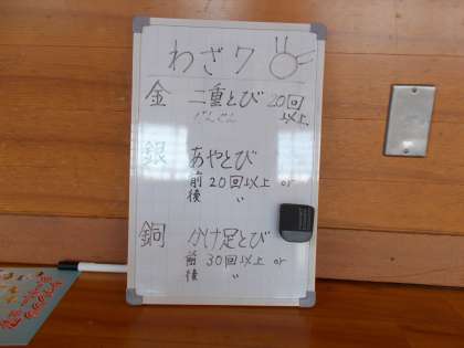 10月7日(木) 3・4年生 体育科 「わざ7」に挑戦しよう 公開日 2021/10/07 更新日 2021/10/07 3年生 鉄棒や縄跳び等の、チャレンジわざ7に取り組んでいます。 「金」を目指して、二重跳びや逆上がり等、自分の目指す技の向上を目指して、一人一人が真剣に練習していました。