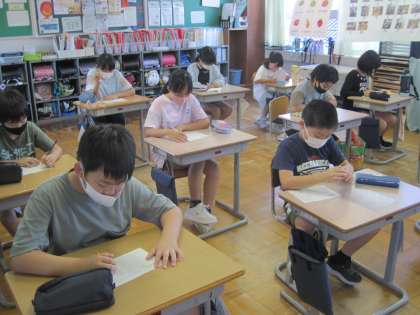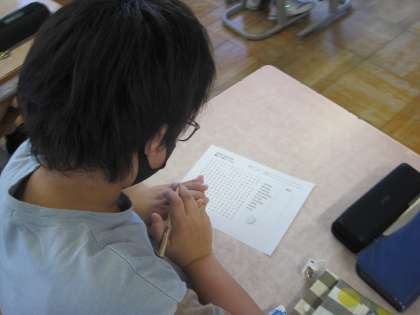 10月11日(月) 4年生 アルファベット探し 公開日 2021/10/11 更新日 2021/10/11 4年生 今朝のサンシャインチャレンジタイムは、アルファベット小文字探し競争をしています。 縦、横、斜めに単語が隠れています。 金曜日に、研究授業をし、楽しく外国語を学んでいる4年生は、単語探しにも夢中です。