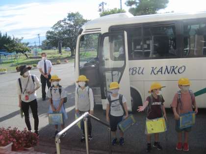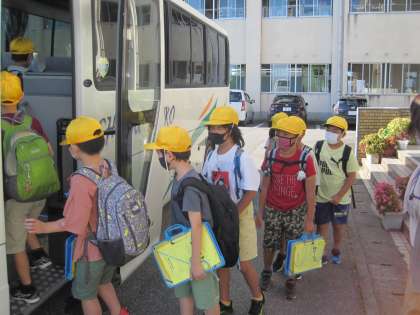 出発式をし、校長先生に挨拶をし、引率の先生、バスの運転手さんにも「よろしくお願いします」と大きな声で挨拶をして、出発です!