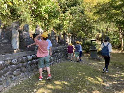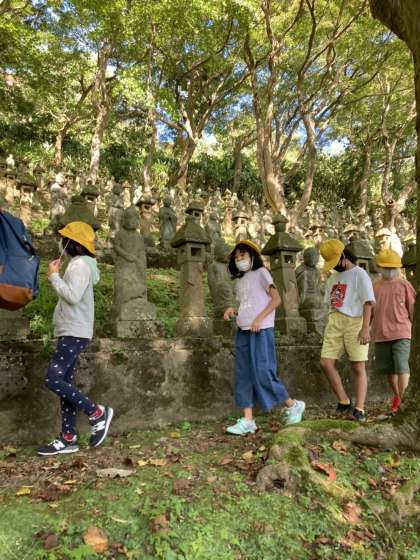 10月11日(月) 3年生 校外学習 五百羅漢にて 公開日 2021/10/11 更新日 2021/10/11 3年生 五百羅漢に到着しました! 自分に似ている顔を探しています。 山の中を元気に歩き回っています。風がとても気持ちよいです。