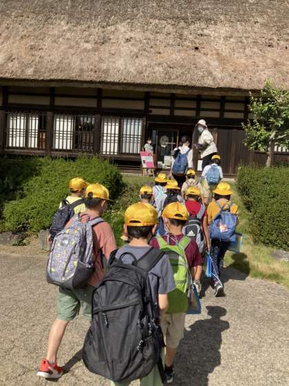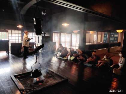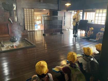 民芸合掌館の様子です。 囲炉裏の役目や昔の家具について話を聞きました。