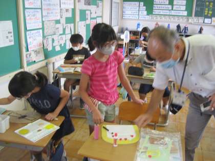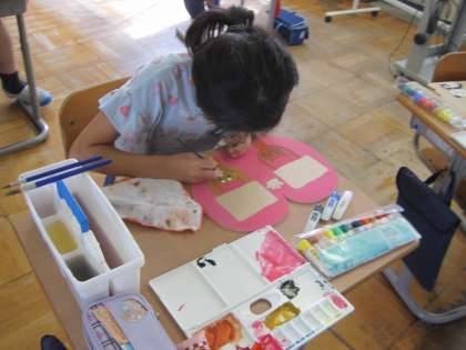 10月11日(月) 5年生 図画工作科 ホワイトボードづくり 公開日 2021/10/11 更新日 2021/10/11 5年生 5年生のホワイトボードも着色が進んでいます。 こちらも着色によって、「らしく」なっていっていますね。
