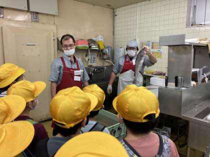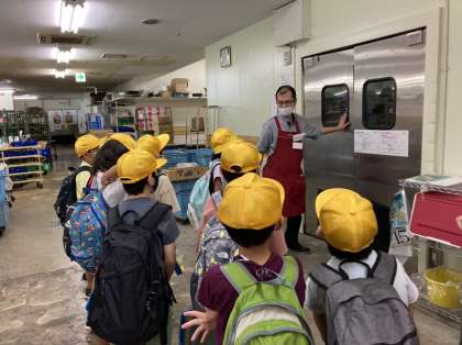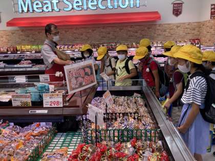10月11日(月) 3年生 校外学習 初めてのお使い!? 公開日 2021/10/11 更新日 2021/10/11 3年生 スーパーマーケットに来ました。 店長さんが、分かりやすく説明をしてくださっています。 スーパーの入口にはなぜ果物があると思う?という質問もされました。 果物や野菜が保管されているバックヤードや、調理場の様子も見せてくださいました。 とても貴重な体験ができました。 さあ、いよいよ買い物です!