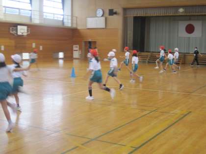 10月13日(水) 3・4年生 体育科 「走」トレーニング 公開日 2021/10/13 更新日 2021/10/13 4年生 昨日、体育教室で教えていただいたことを早速トレーニングに取り入れています。 スキップしていき、帰りは後ろ向きで。 お題に該当する人だけが走る、、、など、様々な方法でトレーニングしています。