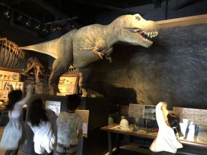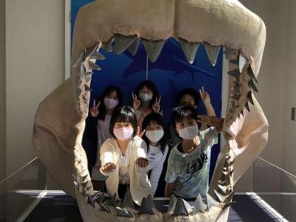 10月14日(木) 4年生 校外学習 赤団の様子 公開日 2021/10/14 更新日 2021/10/14 4年生 赤団は、「ティラちゃん」に大はしゃぎ。 化石や岩石などに興味津々の様子です。様々な展示物に釘付けです。