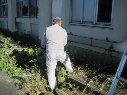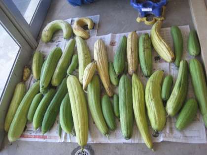 へちまを全部収穫しました。 つるを用務員さんが片付けてくださっています。