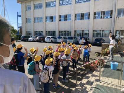 10月15日(金) 1・2年生 校外学習 整列完了! 公開日 2021/10/15 更新日 2021/10/15 1年生 待ち遠しくてたまらない子供たちは、予定時刻の10分前から児童玄関前に整列しています。ワクワクが止まりません! めあてもしっかり言えます!みんなでなかよく、怪我や事故なく、ルールやマナーを守って楽しい1日にしましょうね。 二階の窓から、3年生、4年生、5・6年生が手を振って見送ってくれました。