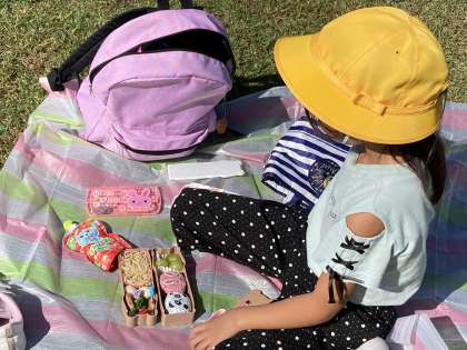 10月15日(金) 1・2年生 校外学習 お弁当おいしいね!