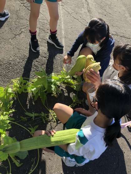 10月15日(金) 4年生 理科 ヘチマの収穫