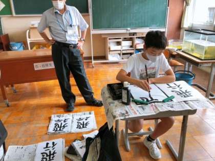 10月15日(金) 5限 書写 「飛行」 公開日 2021/10/15 更新日 2021/10/15 6年生 「飛行」という字を練習しています。 画数が多くて、バランスをとるのが難しい字ですね。5年生も同じ字を練習していますが、どちらが上手に書けているかな?