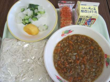 10月18日(月) 今日の給食は? 公開日 2021/10/18 更新日 2021/10/18 給食室 今日のメニューは 1 ソフト麺 2 牛乳 3 カレーソース 4 コロコロサラダ 5 チーズドック 6 柿 です。 柿は「柿が色づくと医者が青くなる」といわれるほど栄養たっぷりの果物です。 ビタミンC、カロテンや食物繊維等の健康成分がぎゅっと詰まっています。 免疫力の向上や美肌効果、腸内環境の改善にも効果があるそうですよ。