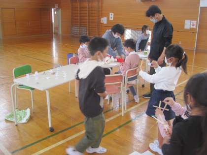 体育館で広々と行いました。