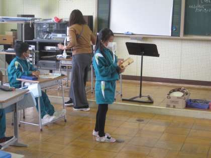 10月20日(水) 2年生 音楽科 いろいろな楽器の音を探そう 公開日 2021/10/20 更新日 2021/10/20 2年生 どんな楽器が使われているかを聞き取っています。 すぐに聞き分けて、発表している様子です。