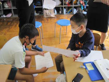 お父さんが、「 」くつをはいた。「 」に「ブランドの」と大人びた修飾語を入れている子供もいました。